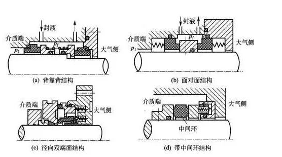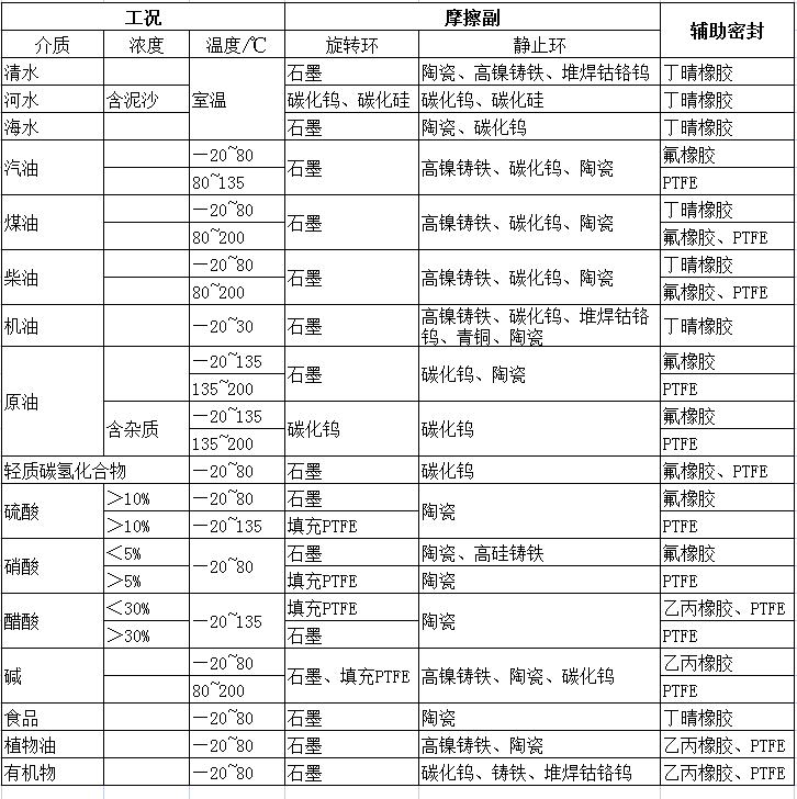 機械密封按工況和介質的不同,有耐高溫、耐低溫機械密封,耐高壓、耐腐蝕機械密封,耐顆粒介質機械密封和適應易汽化的輕質烴介質的機械密封等,應根據(jù)不同的工況選取不同結構型式和材料的機械密封。見下圖:
