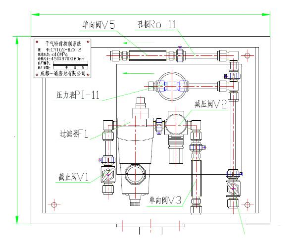 經過減壓閥V2,(減壓到所需壓力0.5MPa,為干氣密封提供穩定的密封氣);